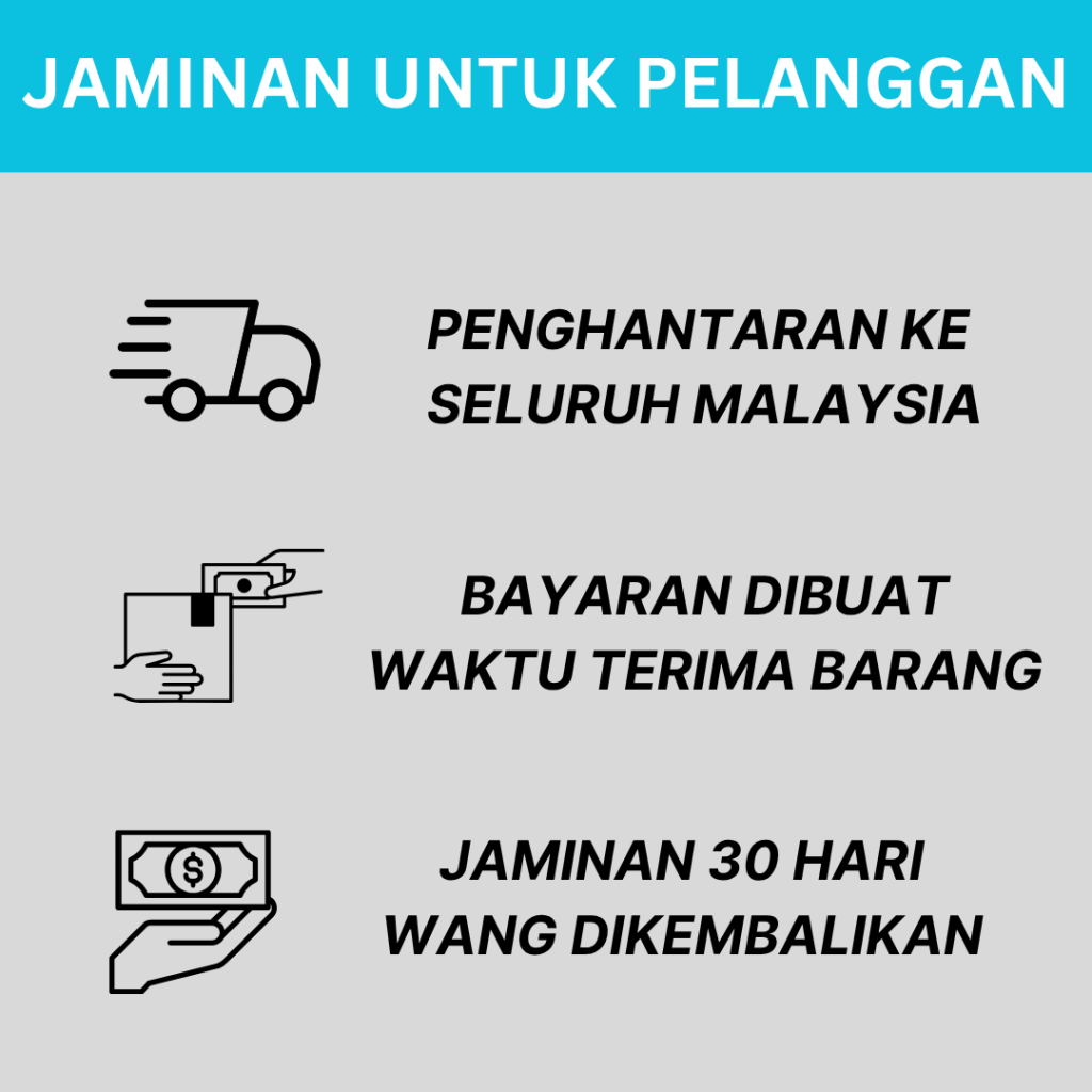 Kami menawarkan pakej COD – “DAPAT BARANG BARU BAYAR” kepada semua pelanggan. Sila lengkapkan butiran dalam borang pesanan di atas